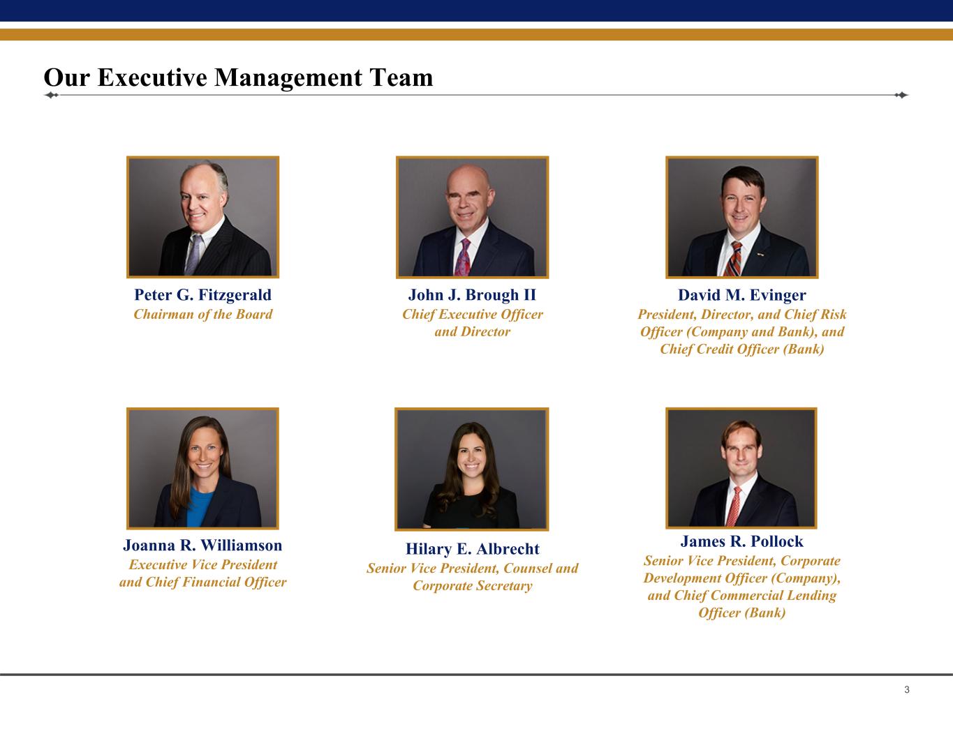 3 68 72 74 15 49 109 42 80 130 232 159 44 148 109 51 233 234 235 100 100 100 Binding Zone Printer Margins Our Executive Management Team Peter G. Fitzgerald Chairman of the Board John J. Brough II Chief Executive Officer and Director David M. Evinger President, Director, and Chief Risk Officer (Company and Bank), and Chief Credit Officer (Bank) Joanna R. Williamson Executive Vice President and Chief Financial Officer Hilary E. Albrecht Senior Vice President, Counsel and Corporate Secretary James R. Pollock Senior Vice President, Corporate Development Officer (Company), and Chief Commercial Lending Officer (Bank)