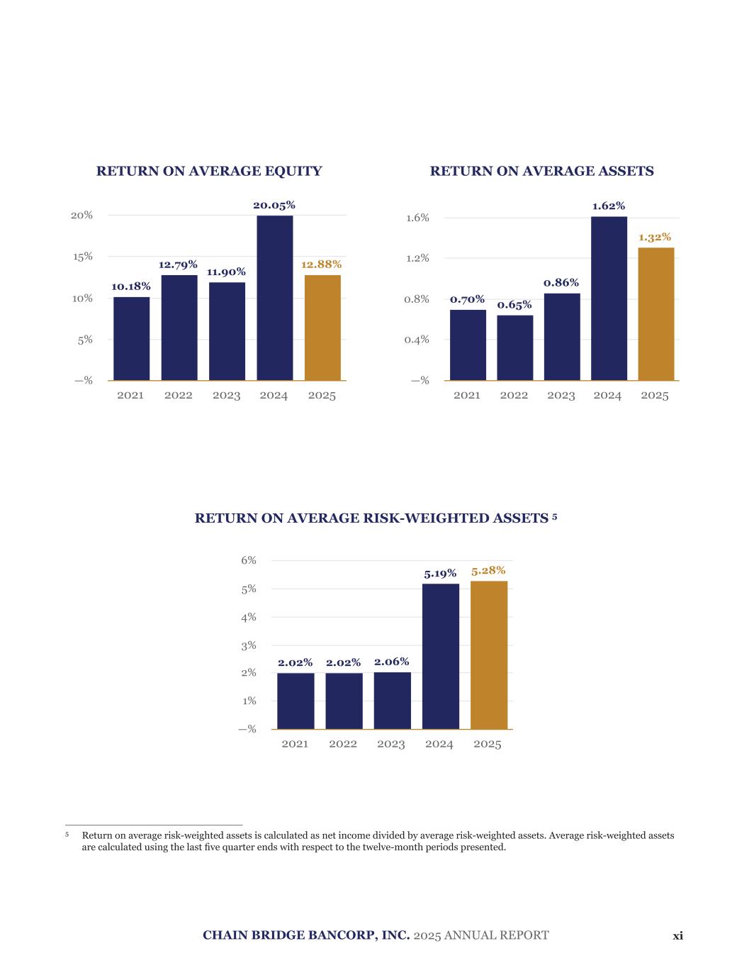 Item 7. Management’s Discussion and Analysis of Financial Condition and Results of Operations The following discussion and analysis of our financial condition and results of operations should be read together with our consolidated financial statements and related notes included elsewhere in this Annual Report on Form 10-K. In addition to historical information, this discussion and analysis contains forward-looking statements that involve risks, uncertainties and assumptions that could cause actual results to differ materially from our expectations. Factors that could cause or contribute to such differences include those discussed below and elsewhere in this Annual Report on Form 10-K, particularly in the section entitled “Cautionary Note Regarding Forward-Looking Statements” as well as the section entitled “Risk Factors.” We assume no obligation to update any of these forward-looking statements except to the extent required by law. The following discussion relates to our historical results, on a consolidated basis. Because we conduct all our material business operations through our wholly owned subsidiary, Chain Bridge Bank, N.A., the discussion and analysis primarily focus on activities conducted at the subsidiary level. Introduction Chain Bridge Bancorp, Inc. (the “Company”) is a Delaware-chartered bank holding company and a publicly traded bank holding company whose Class A common stock is listed on the New York Stock Exchange under the symbol “CBNA”. The Company was incorporated on May 26, 2006, and is subject to supervision and regulation by the Board of Governors of the Federal Reserve System under the Bank Holding Company Act of 1956, as amended. The Company serves as the registered bank holding company for Chain Bridge Bank, National Association (the “Bank”), its wholly- owned subsidiary. The Company does not own or control any other subsidiaries and conducts substantially all of its business through the Bank. We offer a broad range of commercial and personal banking services, including deposit accounts, multiple types of loan products, trust administration, wealth management, and asset custody. Our mission is to deliver exceptional banking and trust services nationwide, blending financial strength, personalized service, and advanced technology to offer tailored solutions to businesses, non-profit organizations, political organizations, individuals, and families. We aspire to grow responsibly by adapting our personalized service and advanced technology solutions to our clients’ evolving needs while emphasizing liquidity, asset quality, and financial strength. We aim to be recognized for our “Strength, Service, Solutions: Your Bridge to Better Banking Nationwide.” Reclassification In connection with the IPO, on October 3, 2024, the Company filed an Amended and Restated Certificate of Incorporation with the Secretary of State of the State of Delaware, which established two new classes of common stock, Class A common stock, par value $0.01 per share (“Class A Common Stock”) and Class B common stock, par value $0.01 per share (“Class B Common Stock”), and reclassified and converted each outstanding share of the Company’s existing common stock, par value $1.00 per share (“Old Common Stock”), into 170 shares of Class B Common Stock (the “Reclassification”). Share information presented prior to the Reclassification date of October 3, 2024 gives effect to the Reclassification and attributes all earnings to Class B shares because no Class A shares were outstanding prior to the Reclassification. Results of Operation and Financial Highlights Highlights of our results of operations and financial condition as of and for the twelve months ended December 31, 2025 are provided below. Financial Performance • Consolidated net income was $20.2 million for the year ended December 31, 2025, compared to $20.9 million for 2024. Earnings per share for the year ended December 31, 2025 was $3.08, compared to $4.17 for 2024. • Net interest income, before recapture of credit losses, was $51.5 million for the year ended December 31, 2025, compared to $44.4 million for 2024. Net interest income, after recapture of credit losses was $52.0 million for the year ended December 31, 2025, compared to $44.5 million for 2024. • Return on average equity was 12.88% for the year ended December 31, 2025, compared to 20.05% for 2024. Return on average assets was 1.32% for the year ended December 31, 2025, compared to 1.62% for 2024. 64